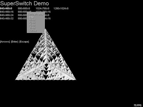 Другой выход — просто воспользоваться той глубиной пикселей, которая в данный момент установлена в Windows. Этот вариант не подойдет в тех случаях, когда работа программы зависит от определенных параметров видеорежима, но неплохо работает, если приложение поддерживает видеорежимы с различными глубинами пикселей. В частности, он встречается в программе Switch (см. главу 4), разработанной специально для поддержки любого режима. Функция