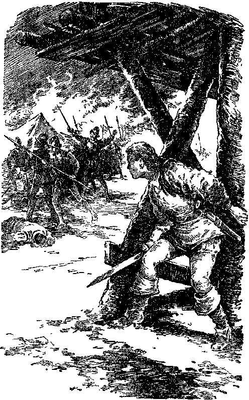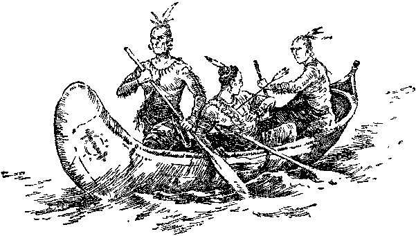 Когда они убедились, что каноэ их продырявлены и не могут держаться на воде, они схватились за луки и стали стрелять в отставших. Много стрел упало в воду, несколько ударилось о борт лодки, не причинив вреда тем, кто в ней сидел, и только одна попала в цель.