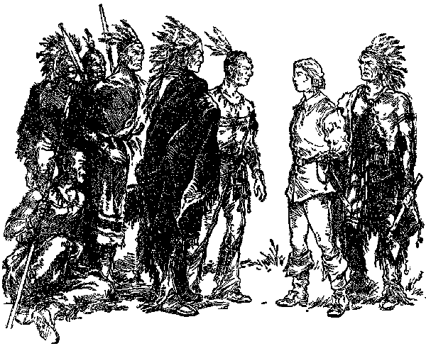 Индейцы в свою очередь с любопытством рассматривали Ренэ. До сих пор они видели только бородатых белых мужчин, а Ренэ был первым белым мальчиком, вступившим на этот берег. Индейцы думали, что белые так и рождаются с бородой и с коротко подстриженными волосами, но у Ренэ никакой бороды не было, а его золотистые кудри спускались до самых плеч. Вот почему они разглядывали Ренэ, словно какую-то диковинку.
