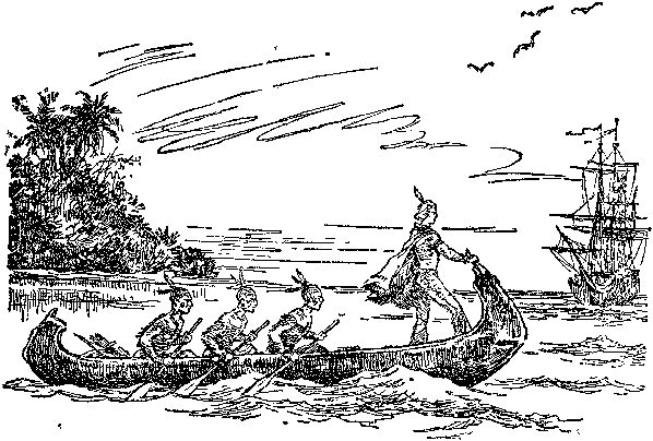 Приблизившись к кораблям, Ренэ заметил, что на палубах столпились люди и с любопытством его рассматривают. Затем кто-то грубым голосом приказал ему остановиться и объяснить, кто он такой и зачем сюда явился.