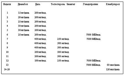 Ни в коей мере не ставя под сомнение того факта, что применение средств, отнесенных к допингам — дело сугубо индивидуальное, и что каких-либо универсальных, подходящих для всех рекомендаций по данной теме нет и быть не может, составитель все же полагает, что никому не повредят знания о том что, когда сколько и как принимают наши «собратья по цеху» во всем мире. А уж как распорядиться полученными знаниями — каждый вправе решать для себя сам.