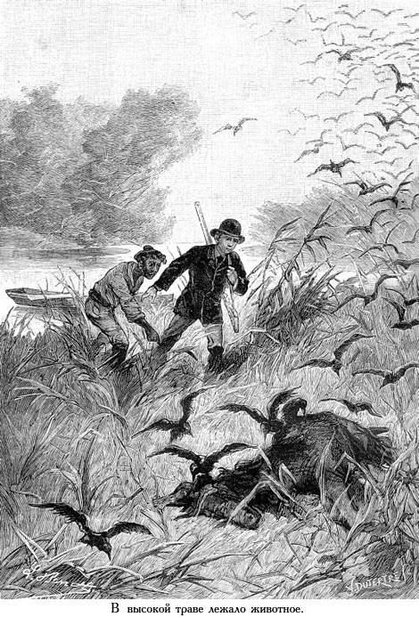 Бриан и его товарищи употребляли все силы, чтобы судно не легло на бок.