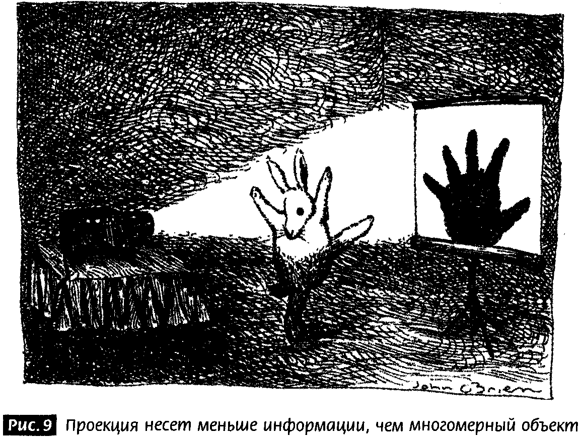 Кампания по дезинформации начинается с детской кроватки, впервые знакомящей вас с тремя пространственными измерениями. Это два измерения, по которым вы ползаете, и третье, по которому вы карабкаетесь вверх. С этого момента законы физики, не говоря уже о здравом смысле, поддерживают веру в существование трех измерений, подавляя любое подозрение, что их может быть больше.