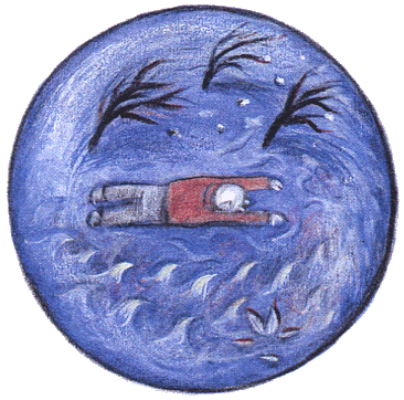 Дети разделись и побежали купаться. Они брызгались и прыгали с камня вниз головой. А потом поплыли к лунной рожице, которая отражалась в воде.