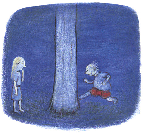 Асмодей лёг на землю. «Наверняка ничего не получится», — подумал он. Затем пробормотал заклинание прямо в землю — в заросли вереска и папоротника. Зашелестели деревья. Лёгкий ветерок пробежал по воде, и кувшинки разом перестали светиться. И вот перед девочкой в лунном свете уже стоял её брат с озорными глазами, веснушками и непослушными кудряшками. Ноги его больше не походили на спички. Это были пухлые детские ножки. Когда он улыбался, на месте недавно выпавшего зуба чернела дыра.