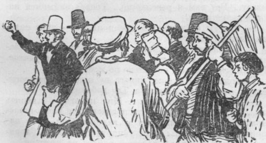 Художнику, правда, кажется, что толпа не отдает себе отчета в своих действиях, подвластная лишь физическому закону инерции: «Точно так же катился бы брошенный с горы огромный камень». Но он сочувствует именно этой толпе, а не лавочникам и аристократам, которые призывают гвардейцев раздавить «чернь».