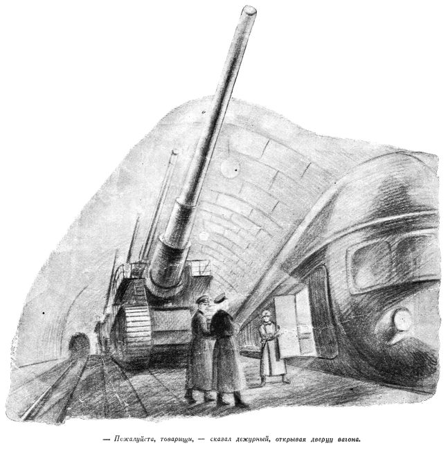 По дороге к аэродрому Гущин узнал, что немцы уже выпустили десятка полтора снарядов по советской территории. Снаряды эти были колоссальной силы и величины. Упав, они сначала ползли по земле, словно гигантскими плугами вспахивая ее на двести метров, и только после этого взрывались со страшной силой.