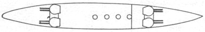 Прежде всего следует напомнить, что расположение башен всегда является компромиссом. Если, например, размерения корабля обусловлены размерами судостроительных доков, эллингов и шириной шлюзов, через которые ему придется проходить, для энергетической установки может быть отведено лишь вполне определенное пространство (и притом заранее известно, сколько нужно будет поставить турбин и котлов, чтобы получить заданную скорость хода и дальность плавания), то эти условия уже определяют расположение турбин и котлов, дымовых труб, мачт, боевых рубок и всего другого, мешающего действию артиллерии. Таким образом, речь будет идти не о том, “какое расположение башен артиллерии главного калибра является наилучшим само по себе”, а о гораздо более ограниченном вопросе: “какое расположение башен является наилучшим при таких- то вполне определенных условиях".
