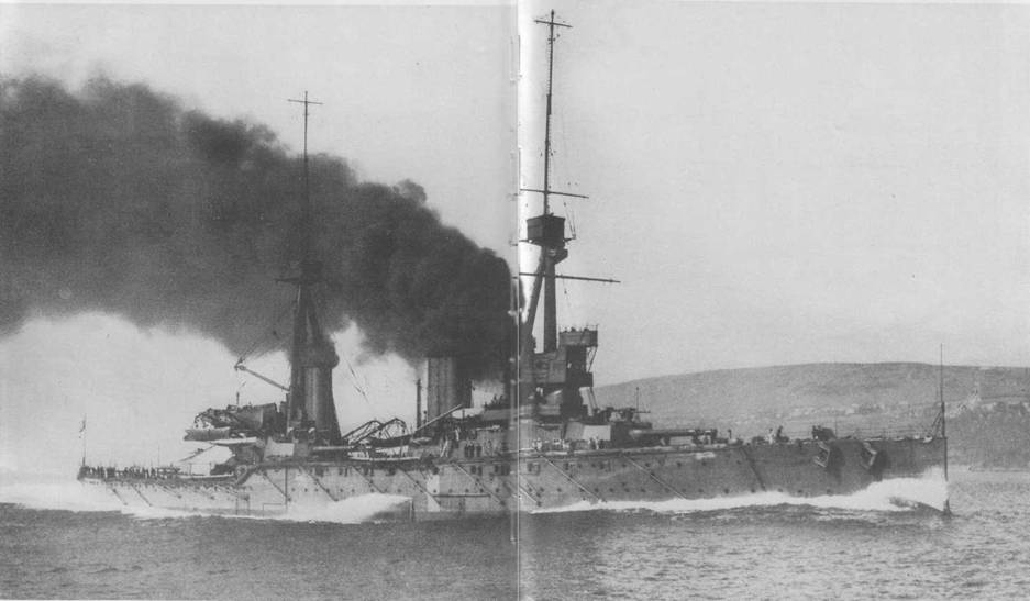 Каким же рисовался Ховгарду будущий корабль, соответствующий таким тактическим требованиям? В сущности, по вооружению и бронированию им мог стать эскадренный броненосец, увеличенный в размерах до того, чтобы развивать более высокую скорость. Следует отдать должное проницательности Ховгарда – предсказанные им корабли действительно появились через десять лет. Но в 1905 г. английские кораблестроители, проектировавшие крейсерский вариант “Дредноута”, еще не могли свыкнуться с мыслью о том, что “эскадренный” крейсер может стать крупнее броненосца. Поэтому они приняли второй путь: повышать скорость хода не за счет увеличения водоизмещения, как предлагал Ховгард, а в основном за счет ослабления бронирования. Немцы, принявшие вызов англичан, избрали третий путь: довольствуясь меньшей скоростью, они большое внимание уделяли бронированию и живучести корабля. В результате появился новый тип прочных и грозных кораблей, в создании которых Германия всегда была более удачлива, чем Англия.