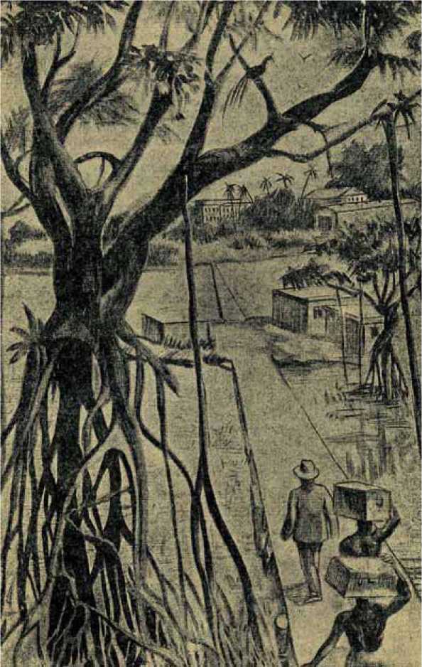 Когда маленький речной пароходик остановился у пристани, и Ильин сошел на берег, его первое впечатление было довольно безотрадно. Сонная, желтая, в низких берегах река. Справа бесконечное плоское болото, поросшее редкими мангровыми деревьями. Левый берег, немного более высокий, покрыт лесом. Только под самыми зданиями института почва повышалась, образуя длинный пологий холм. Скат холма к реке был превращен в густо разросшийся парк.