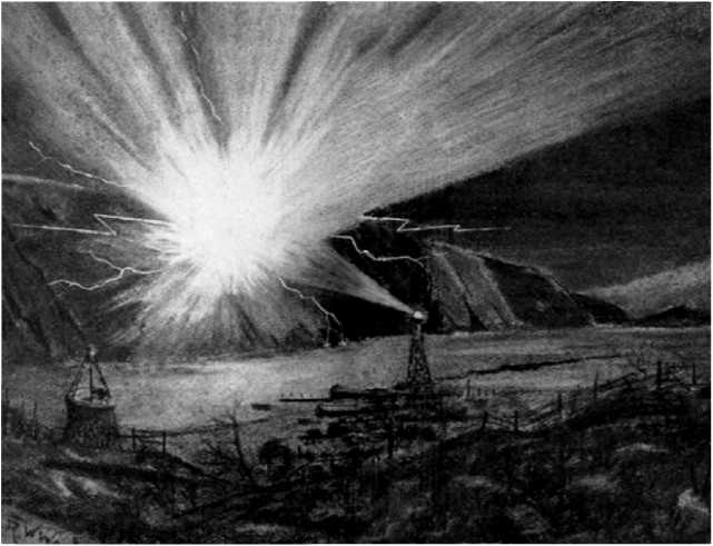 Атомный взрыв. Иллюстрация У. Грина к роману «Человек, который потряс Землю».