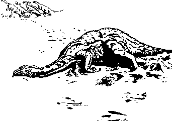 Эдафозавр направился к берегу реки. Его путь теперь проходил через молодую и низкую поросль хвощей каламитов,застывшую красоту которых он сокрушал своим телом и оставлял за собой широкую борозду переломанных стволов и ветвей.
