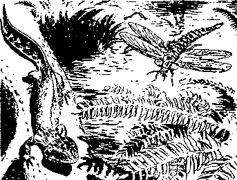 В воздухе временами пролетали стрекозы, гоняющиеся за добычей, в большинстве случаев над водой, где в крутящихся роях танцевали похожие на поденки триплособы, мишоптеры, коридалоиды и другие. Они летали быстро, но бесшумно; только тогда, когда проносилась гигантская меганевра, свист в воздухе был резче и пронзительнее.
