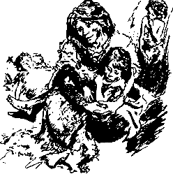 6 — община неандертальцев (Homo neanderthalensis), поселившаяся в пещере (к рассказу «Таинственный идол»)