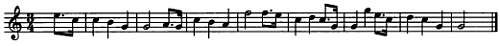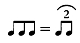 Ноты с флажком объединяются чертой, соединяющей штили, в группы, которые, как правило, подчиняются ритму, задаваемому нотами большей длительности: