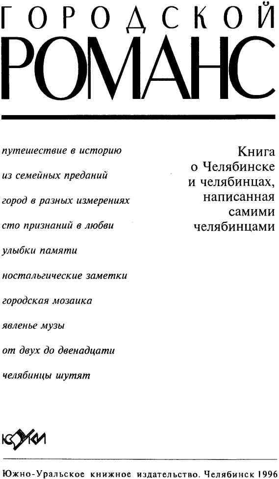 Эта книга — ключ к душе города. По крайней мере, такой мы хотели ее сделать. В ней много личного, субъективного. Ведь эти отношения — я и мой город — не могут быть иными. И в то же время эта книга — как бы коллективный портрет Челябинска, нарисованный людьми разного возраста, профессий, характеров, жизненного опыта. Объединяет их то, что все они — челябинцы. Все они любят свой город, радуются его успехам, горюют его бедами, хотят, чтобы он становился лучше, краше, моложе душой и обликом.