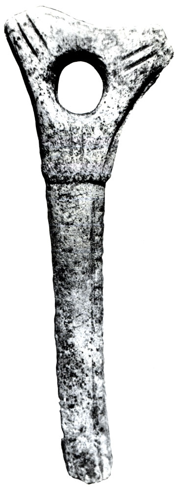 Метки, указывает Маршек, невелики и занимают очень небольшое пространство, а потому, если бы они служили только для украшения, их скорее наносили бы ударами одной силы по одному и тому же орудию, используя одинаковый нажим. Но микроскоп показал обратное. Поскольку трудно предположить, чтобы резчик так часто менял свои орудия, Маршек пришел к выводу, что метки наносились постепенно, в разное время и разными орудиями.