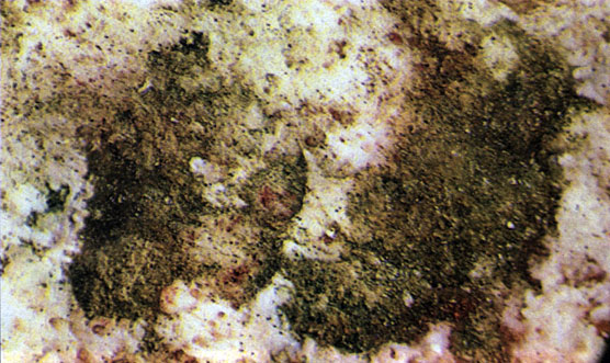 Микрофотография участка стены, пораженной водорослями, вскоре после обработки
