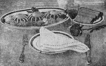Нужно иметь также специальную посуду для подачи кушаний на стол. Так, супы подаются в фарфоровых мисках-супницах, губадия и другие пироги в больших круглых блюдах, домашняя птица — в овальных блюдах, а такие кушания, как розы, чельпек, гульбанак, — в вазах. Катык, сузьма, альба подаются в пиалах.