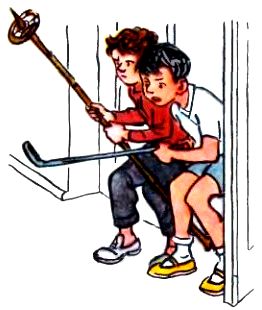 Они взяли кочергу и лыжную палку, приоткрыли дверь и заглянули в комнату.
