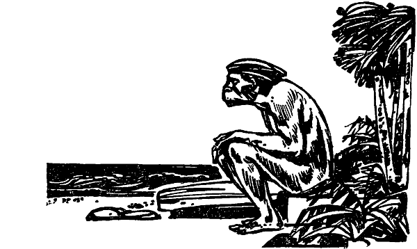 Входим в луговую протоку. Рамон останется здесь. Выражение его почерневшего потного лица какое-то печальное, гордое. Стоя на корме лодки, он нажимает на нее пружинящими ногами и таким образом приподнимает немного нос. Это позволяет нам проникнуть в заросли мангровых. Добираемся до твердой почвы и входим в пальмовую рощу. Рамон, обхватив руками и ногами ствол пальмы, быстро и уверенно взбирается вверх. Он срывает несколько кокосовых орехов. Луис и Начо срезают верхушки ударами мачете. Подняв лицо к солнцу, жадными глотками, не переводя дыхания, пьем, как дикие звери, живительный напиток.
