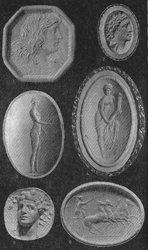 И действительно, давно исчезли с лица земли прославленные дворцы и храмы античности, полностью утрачены картины живописцев, обезображенными временем дошли до нас статуи прославленных ваятелей древности, а геммы предстают перед нами такими же, какими они тысячи лет назад вышли из рук древних мастеров.