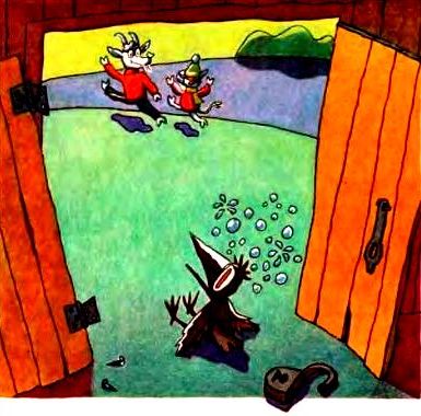 А дело было так… Козл действительно отправился за дровами. И вдруг видит - ненавистная волчья морда. «Привет, голубчик!-не помня себя от ярости вскричал Козл.- Сейчас ты у меня…»