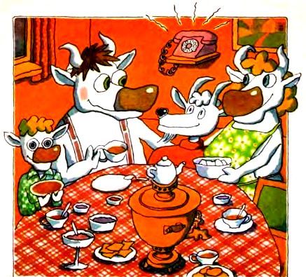 Не выдержал волк и со злости проглотил телефонную трубку, но из живота его продолжал раздаваться спокойный и мудрый голос батюшки Корова…