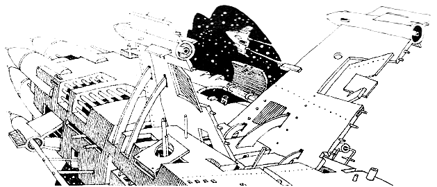 Иллюминатор перед ними наполнялся звездами. Они летели! Но часть экрана закрывала огромная бесформенная масса, которую Хью никогда не видел, разглядывая звезды в иллюминатор Капитанской рубки. Сначала он не мог понять, что это такое, но, когда наконец сообразил, преисполнился благоговейным восторгом — это был Корабль, и он смотрел на него снаружи. Хотя разум его давно уже воспринял истинную природу Корабля, мысль о том, что он увидит Корабль извне, никогда не приходила ему в голову. Звезды — да, поверхность планеты — да, к этому он был уже готов, но наружная поверхность Корабля…