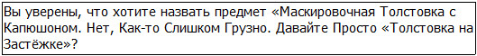 – Маскировочная толстовка на застёжке с капюшоном… Нет, как-то слишком грузно. Давайте просто «Толстовка на Застёжке».