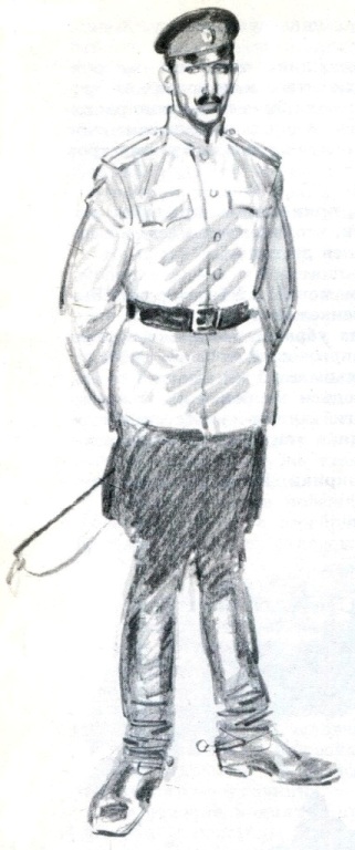 Наконец я сообразил, что у меня есть адрес, где на первый случай остановиться. Подрядил извозчика, и мы поехали вокруг памятника. Теперь я увидел часового. При памятнике с важным видом стоял седобородый старик с ружьем. На нем шитый золотом мундир, высокая, как колокольня, медвежья шапка с позументом, георгиевские кресты во всю грудь… Видать, повоевал старик!