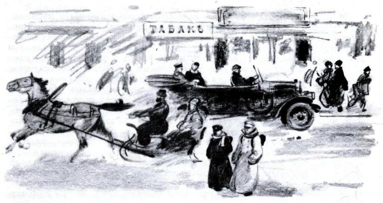 Знаменская площадь — будто муравейник. Невиданное множество прохожих снуют туда и сюда. Прямо по мостовой катятся вагоны с людьми. Мчатся кареты с ливрейными лакеями на запятках (в Перми только архиерей имел карету). В уличной тесноте тычутся туда и сюда извозчичьи пролетки. Запряженные мохноногими битюгами, тарахтят ломовые телеги с грузом. Крики, звонки, свистки, шум, гам…