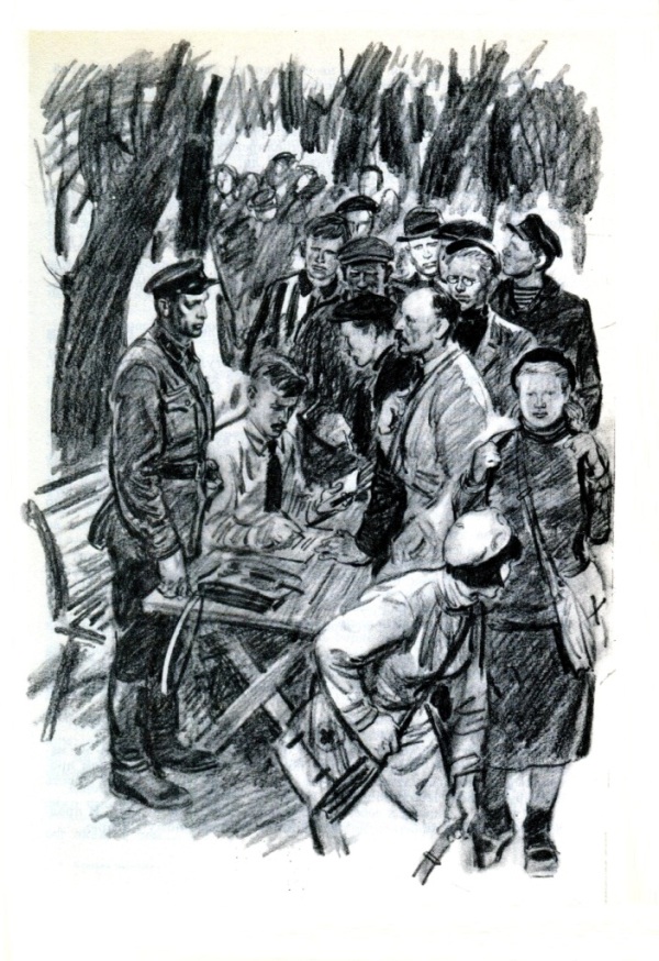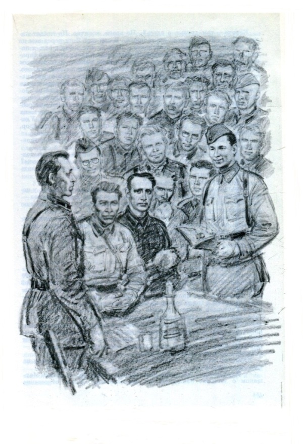 Случалось мне когда официально, а когда и запросто бывать у начальника политотдела армии бригадного комиссара Кирилла Панкратьевича Кулика. Рослый, спортивного вида кадровый танкист, он с первого взгляда располагал к себе простотой и ровностью в обращении. Высокое звание его ничуть не сковывало собеседника. Встреча с ним всегда приносила чувство удовлетворения. Принципиальный коммунист, человек культурный, начитанный, Кирилл Панкратьевич любил в свободную минуту потолковать и об искусстве, и о литературе, живо интересовался трудом и бытом писателей. Познакомившись близко со мной, Кулик как-то сказал, что партийная организация Ленинграда в боях обескровлена, нуждается в пополнении, и подал мне мысль о вступлении в партию. В декабре сорок первого, в самую напряженную пору блокады, мне особенно захотелось стать солдатом партии, и мое заявление было удовлетворено.