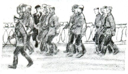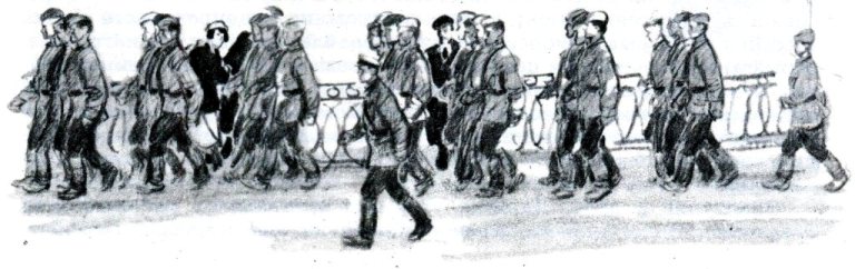 Учитель пения, которому поручили руководить занятиями, выстраивал нас ровными рядами в актовом зале, а сам как бы раздваивался: то садился за рояль, то вскакивал и, заглядывая в заграничную книжечку, поправлял наши движения. «Сокольские» часы, помнится, нам, ребятам, полюбились, быть может, прежде всего тем, что вытесняли однообразные, скучные уроки пения. Спортивных результатов движения в зале приносили мало — и мы, как звонок, бежали на улицу, чтобы с удвоенным азартом ударить по футбольному мячу, схватить палки и поиграть в лапту или в городки, а то и просто оттузить друг друга.