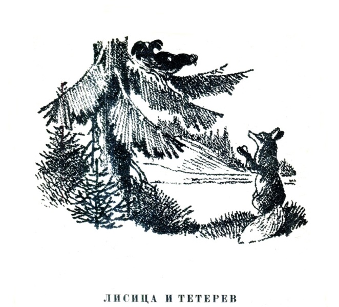 Тетерев сидел на дереве. Лисица подошла к нему и говорит: