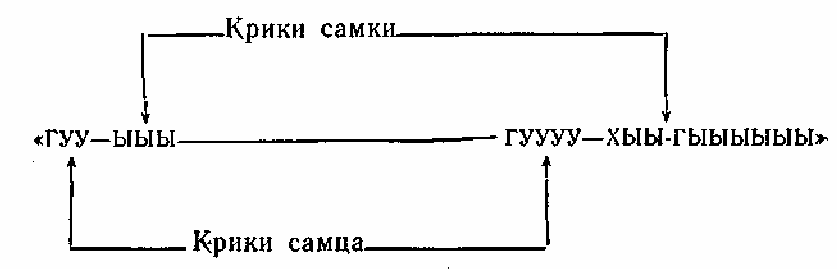 Интересно, что при повышенном общем шуме нередко можно наблюдать описанные выше лоцирующие движения и в отсутствие звукового сигнала, идущего от жертвы. Сова как бы проверяет себя. Тот же факт, что тип движений головы не всегда зависит от степени зашумленности фона и расстояния до жертвы, говорит о несомненном значении этих движений и для зрения. Может быть, рассматривая предмет с разных точек, сова получает о нем и о расстоянии до него более полную информацию, нежели тогда, когда смотрит на него, не двигая головой. Здесь уместно заметить, что лоцирующие движения характерны также для хищной птицы гарпии (Harpia harpia). Кстати, у этой ведущей дневную жизнь птицы, как и у сов, имеется лицевой диск, образуемый приподнимающимися перьями с боков головы, на затылке и вверху шеи. Возможно, что в данном случае движения головы связаны и со стремлением птицы хорошенько присмотреться к чему-либо.