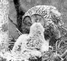 В феврале — начале марта сычи вновь оказываются на местах будущих гнездовий. И сразу же еще заснеженный ночной лес начинает оглашаться их звучными криками...