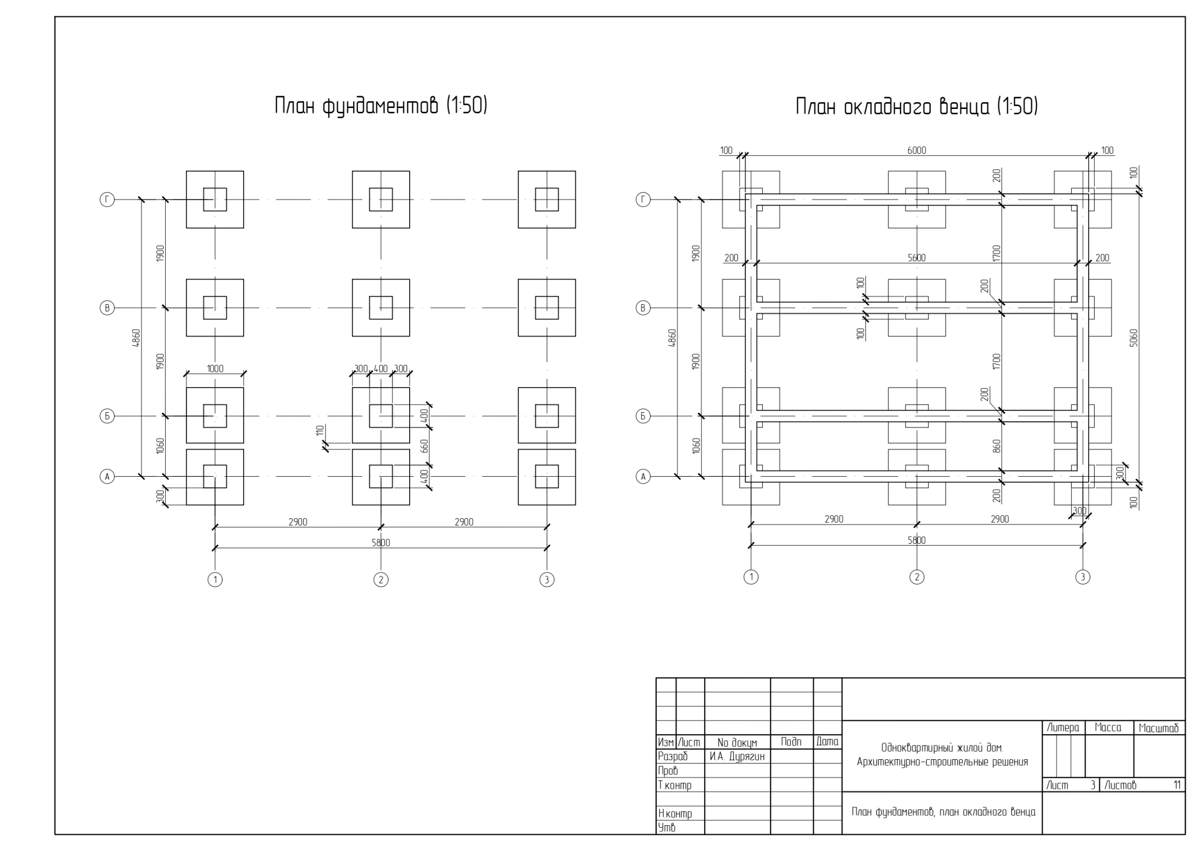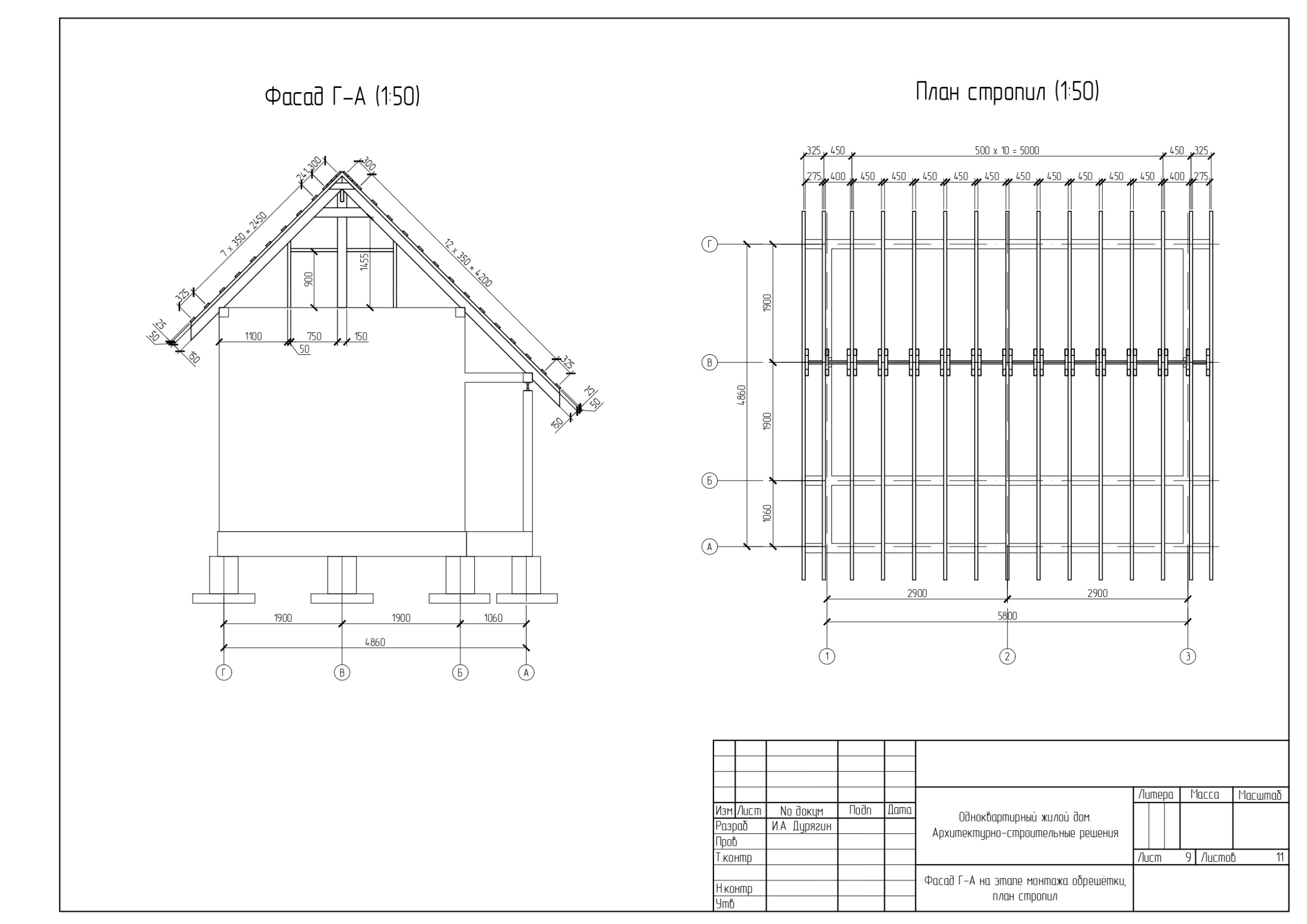 Вторая часть – «Архитектурно-строительные решения». Здесь представлены чертежи дома на разных этапах строительства.
