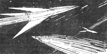 Все, глубоко пораженные этим утверждением, смотрели на математика. А тот, подойдя к доске, выбрал кусок мела покрупнее и сразу же приступил к вычислениям. Он рассуждал следующим образом: в день падения метеорита была солнечная погода, а если предметы в свете метеорита отбрасывали тени на солнечных местах, то блеск его, очевидно, был сильнее солнечного. Значит, и температура у него должна была быть выше солнечной. Зная длительность пребывания метеорита в земной атмосфере, профессор рассчитал, что, независимо от толщины стенок корабля, внутри его была температура не менее шестисот градусов. В таких условиях ни одно живое существо не выдержало бы, конечно, ни минуты. Тем не менее «отчет» продолжался в течение всего полета, вплоть до момента катастрофы. Следовательно, либо его записывали автоматические приборы и в ракете вообще никого не было, либо неизвестные существа обладают совершенно иным строением, чем животные или растения.