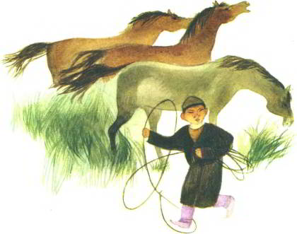 С той поры нельзя было узнать мальчика. Аркан бросал далеко и метко. Коня запрягал быстро, умело и ездил на нём, как настоящий джигит.