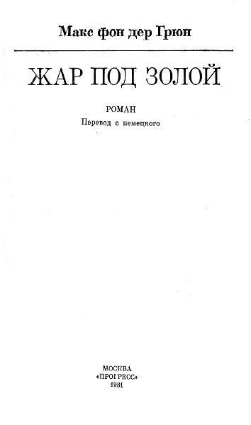 Одна из них называется «Наш час настанет. Правый экстремизм среди молодежи», ее авторы — А. Мейер и К.-К. Рабе; другая, снабженная лаконичным заголовком «Неонацисты» и принадлежащая перу Ю. Поморина и Р. Юнге, уже знакома советским читателям[1]. Одновременно с этими книгами в 1979 году вышел роман известного писателя Макса фон дер Грюна «Жар под золой», касающийся тех же проблем и тоже располагающий к размышлениям об опасных тенденциях в политической жизни ФРГ. То, о чем журналисты сообщают суховатым языком фактов и цифр, у писателя становится основой увлекательного, почти детективного сюжета, развертывающегося в одном из западногерманских городов в наши дни.