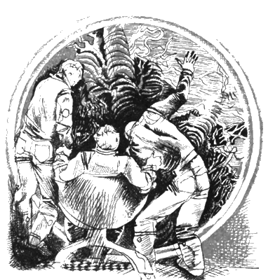Всяческие чудеса довелось им встретить в лунном мире. Познакомились с его обитателями — селенитами. Когда селенит стареет, он не умирает, а «растворяется, точно пар, становится воздухом»; жители Луны не едят, а лишь вдыхают пар поджаренных на угольях летучих лягушек; пьют они сгущенный воздух, выжимаемый в чаши; у них вставные глаза, которые при необходимости можно вынуть и спрятать… Чудеса можно было бы перечислять еще долго. Но ведь и «отец истории» Геродот сообщал, что в далеких землях обитают люди с песьими головами. И кто поверил бы писателю, сочинителю, что на Луне меньшие чудеса? Впрочем, главное чудо еще впереди.