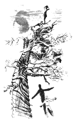 А приключения поистине удивительные. Семь дней и столько же ночей носил ветер злосчастный корабль, а на восьмой обессиленные моряки-космонавты увидели какую-то огромную, висящую в воздухе землю, похожую на сияющий шарообразный остров. Вскоре им удалось причалить к берегу, и тогда они узнали, что попали… на Луну!