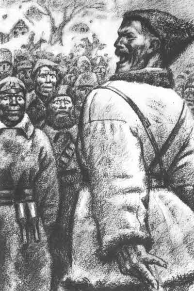 На кургане возле ветряков собрались полковники, батальонные, ротные, начальники штаба. Кто же эти полковники, батальонные, ротные? Есть дослужившиеся до офицера солдаты царской армии, есть парикмахеры, бондари, столяры, матросы, рыбаки из городов и станиц. Все это начальники маленьких красных отрядов, которые они организовали на своей улице, в своей станице, в своем хуторе, в своем поселке. Есть и кадровые офицеры, примкнувшие к революции.