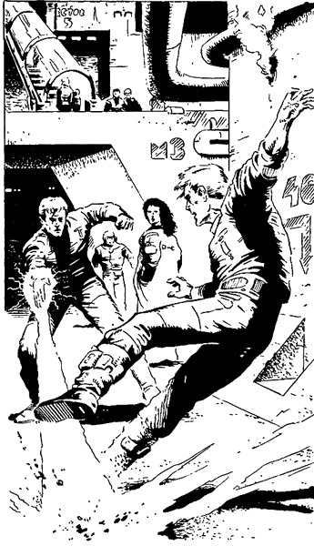 Мир потемнел, когда он перебегал улицу. Он потряс головой, чтобы прояснить восприятие, но это ему не удалось. Он только смог стремглав броситься в переулок между закопченым двухэтажным домом и небесно-голубым кварталом из прямолинейных жилых домов-башен. Он не увидел женщину на веранде под ним и не почувствовал ее, пока она не замахнулась на него шваброй. Это импровизированное оружие прошло мимо, так как он уловил ее тень и успел увернуться.