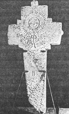 [5]. На первом месте в пантеоне Владимира оказался громовержец и бог войны Перун, на втором месте — солнечное божество Хоре, заимствованное, по всей видимости, славянами у своих южных ираноязычных соседей, а почетное третье место в этом перечне богов занял Дажьбог. Как было показано мной в исследовании о «Голубиной книге», если исключить двух явно неславянских божеств Симаргла и Хорса, то все остальные собственно славянские божества из этого перечня в своей совокупности в точности соответствуют описанию облика Первобога в данном духовном стихе. Дажьбог в этом контексте соотносится с солнцем как лицом Первобога, из тела которого возникла вся видимая Вселенная, что вновь подтверждает солярную природу этого божества, впервые отмеченную в славянском переводе «Хроники» Иоанна Малалы. Достоверность известия «Повести временных лет» о пантеоне Владимира подтвердили археологические раскопки в Киеве 1975 г. В их ходе было обнаружено небольшое прямоугольное сооружение, вытянутое параллельно великокняжескому дворцу X в. на расстоянии 25–27 м к востоку от восточной стены дворца. Фундамент этого сооружения датируется 971–988 гг., а наиболее вероятна указанная в летописи дата 980 г. Интересно отмстить, что оно было ориентировано по линии север — юг и на краях обрамлялось своеобразными «лепестками», на которых, очевидно, размещались языческие идолы. Понятно, что в центре пантеона должно было стоять изваяние Перуна, местоположение других богов определяется весьма предположительно. Б. А. Рыбаков довольно логично предположил, что на двух южных «лепестках» могли помещаться идолы Дажьбога и Хорса как солнечных божеств, обратив особое внимание на отстоящую на 2 м на юго-запад от фундамента ямку диаметром около 80 см, по краям которой прослеживаются следы двенадцати кольев, которые могли олицетворять годовой солнечный цикл из двенадцати месяцев. Впрочем, пантеон Владимира простоял на этом холме недолго — вплоть до следующей религиозной реформы этого же князя, принявшего через восемь лет христианство. «Проложное сказание о Владимире» в Прологе 1383 г. так описывает первое действие этого князя после крещения: «И пришедъ къ Киеву изби вся идолы: Перуна, Хорса, Дажьбога и Мокошь и прочая вся кумиры…»