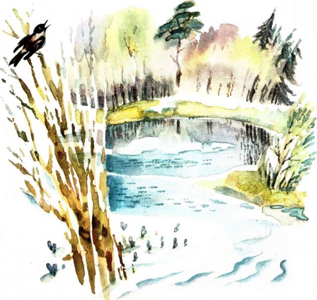Радостна, шумна и пахуча весна. Звонко поют птицы, звенят под деревьями весенние ручейки. Смолой пахнут набухшие почки.