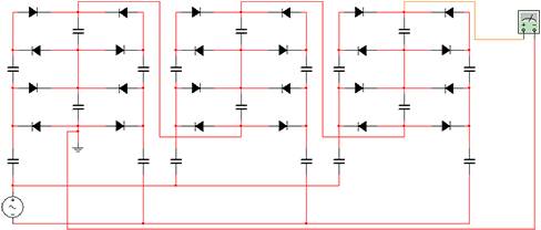 Рис. 2. Установка Денисова. 1 — вакуумные колбы; 2 — спирали накала; 3 — разгоняющие электроды.