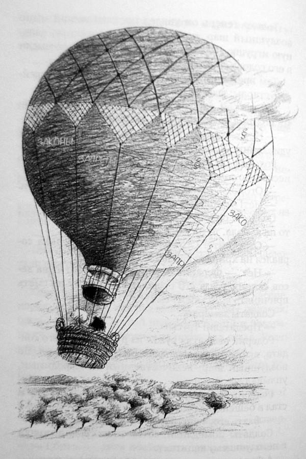 Но купол не загорался, он медленно наполнялся горячим воздухом, расширялся, надувался, рос — высотой с дерево, с дом, — покачивался на ветру, пожелтевшая бумага блестела в первых лучах солнца. И вот шар уже приподнялся над смотровой площадкой, он продолжал расти, становился все круглее, полнее и начал тянуть корзину вверх.