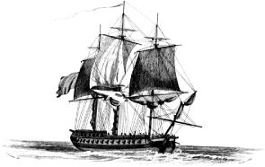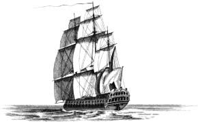 Линейный корабль, готовящийся к отплытию (видны марсовые на реях).